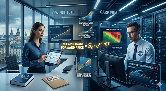 Für CFA- und FRM-Kandidaten markiert dieses Verständnis den entscheidenden Übergang: weg vom reinen Anwenden von Formeln, hin zum ökonomischen Denken in No‑Arbitrage‑Beziehungen, Risikoübertragungen und Zahlungsströmen. Erst an diesem Punkt entfalten Konzepte wie Zinsparität, Greeks, Hedging‑Effektivität oder Stressszenarien ihre volle Bedeutung.