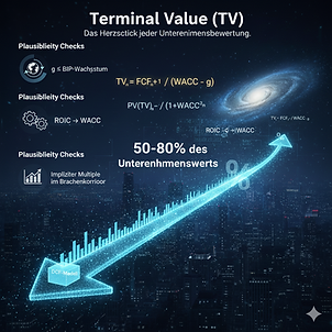 Unternehmen existieren nicht nur 5–8 Jahre – sie generieren Cashflows über Jahrzehnte. Der Terminal Value bildet diese „Ewigkeit“ kompakt, mathematisch sauber und ökonomisch konsistent ab.